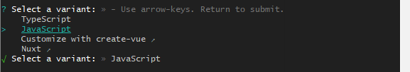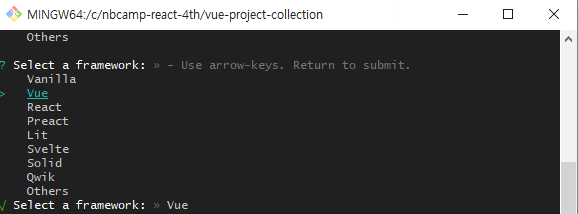 V Select a framework: >> vue
