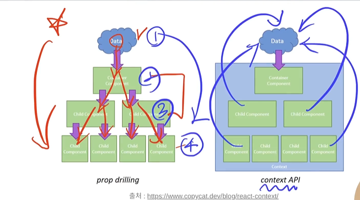 - 이 단계가 100개라면 엄청 비효율 적이야. 그래서 useContext hook을 사용하는거야.